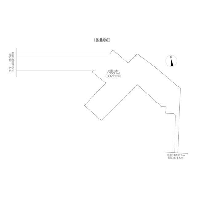 | 接道状況 | 西32.0m 公道 接面7.2m 南7.0m 公道 接面1.4m | 地目 | 宅地 |